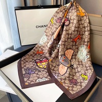 شال نسائي كلاسيكي من حرير التوت مربع كبير 55*55 لوحة زيتية للحيوانات عصرية للربيع والخريف وشاح حرير رقيق
